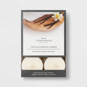 12pk Tealight Vanilla Bean and Amber Candle - Threshold™: Palm Oil & Paraffin, 4hr Burn Time, Spring Decor