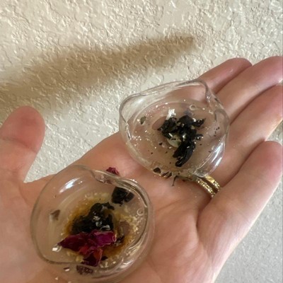 I don’t care for the amber scent, I wish there was a simple vanilla option. The tealights are super pretty burning in a clear glass holder or just on their own, because they have a clear outer, not aluminum like most tealights out there. They seem to burn quickly but I didn’t time it or anything like that. I’d buy them again for the aesthetic because I really prefer the look of the clear encasement each candle is poured in. I usually place tealights in empty jars like baby food, olive, or jelly jars, etc. and it makes it look more high end overall.