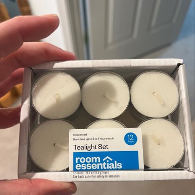 12pk Unscented Tealights White - Room Essentials™: Paraffin Wax, 4hr Burn Time, 1 Wick Tea Lights