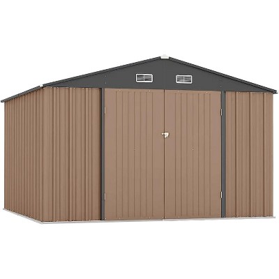 10x8 FT Outdoor Storage Shed with Lockable Door – Large Garden & Utility Shed with Updated Frame, Waterproof Design for Patio, Lawn - Brown