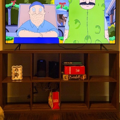 A: The open shelves are perfect for displaying books, souvenirs, and small electronics.