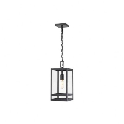 13" Metal/Glass Square Cage Modern Outdoor Pendant Light Black - LNC: ETL Listed, LED Compatible, Weather-Resistant