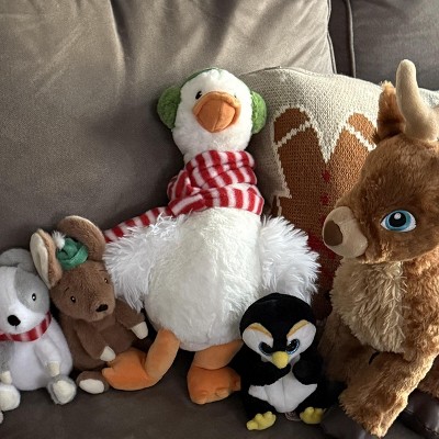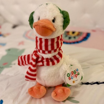 Give your kid a soft cuddle buddy with the Goose with Scarf and Earmuffs Stuffed Animal from Gigglescape™. Featuring a soft plush construction, this stuffed goose stands 13 inches tall wearing earmuffs and a striped scarf for an adorable look. Recommended for ages 1 and up, the goose stuffed animal is perfect for snuggling, decorating or gifting.