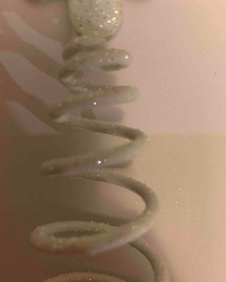 The main photo looks like a smooth white metal finish and the description doesn't mention the GLITTER all over. Once you have glitter near anything it's impossible to get rid of. I'd like it ok without the glitter, I wish that would have been mentioned in the description since I didn't see it in the reviews.