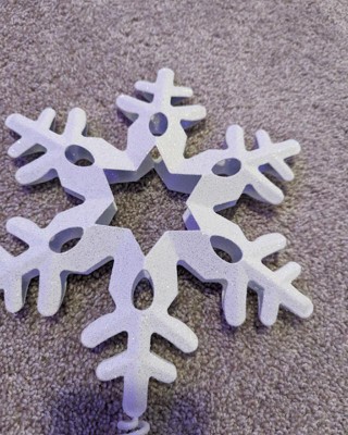 [This review was collected as part of a promotion.] This white, metal, snowflake could be the perfect touch to anyone’s holiday decor. It is medium sized and glittery. You can see from the picture. It is slightly bigger than the gold star tree topper. For the price, I would say this could be perfect for any tree! It reminds me of cutting up a paper snowflake and opening it to be able to see through it. It has an open concept. I received an incentive to write this review.