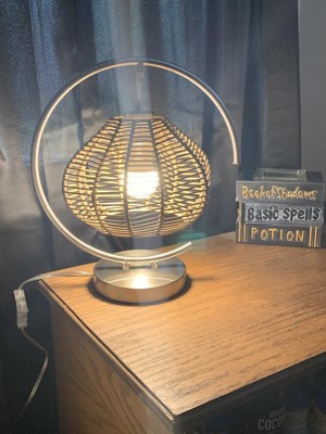 13.75" Leonie High Brushed Nickel Iron Table Lamp with Rattan Shade - River of Goods