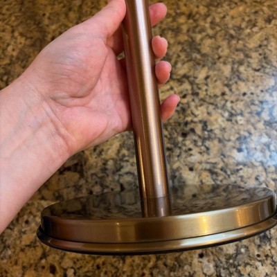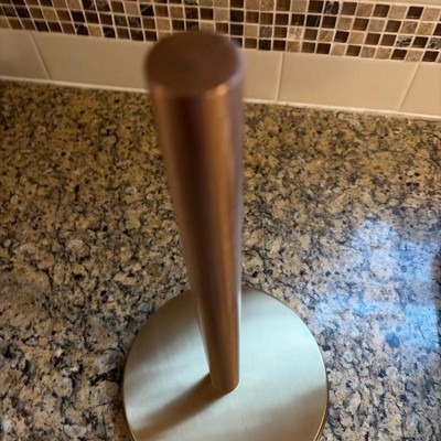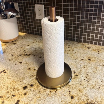 Help keep your kitchen neat and organized with this Stainless Steel Paper Towel Holder from Hearth & Hand™ with Magnolia. Made of metal, this freestanding paper towel holder provides easy access to paper towels whenever they're needed. It features a vertical rod with a copper finish and a gold-tone round base, providing a touch of shine and easy placement on any flat surface.