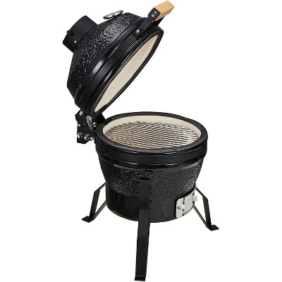 13 in. Black Portable Ceramic Charcoal Grill with 10.6 in. Stainless Steel Iron Cooking Grate, Heat Deflector, Ash Tool