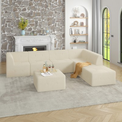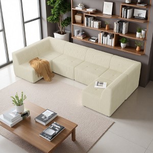 130.32" Corduroy U-Shaped Modular Sectional Sofa, 6-Piece Set