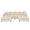 132" Corduroy U-Shaped Sectional Sofa with Storage & Cup Holders