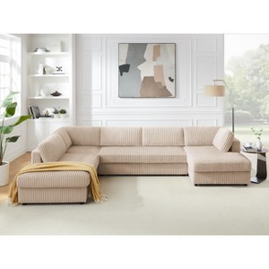 Stretch out, settle in, and make yourself at home with this 133.1'' sectional couch. Upholstered in soft, textured corduroy and built on a solid wood frame, this spacious sofa offers deep seating and two generous chaises, making it perfect for lounging, hosting, or everyday family living. With a clean-lined silhouette and modern appeal, this stylish sofa fits beautifully in both open living rooms and cozier spaces. Available in three versatile colors, it blends seamlessly into a range of interior styles while adding warmth and texture to your space.