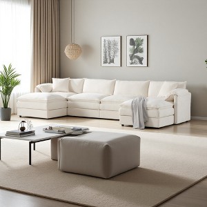 136" Chenille U-Shaped Modular Sectional Sofa with Double Cushions
