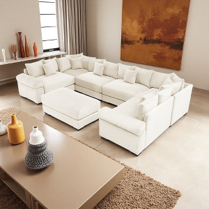 137.7" Corduroy Cloud U-Shaped Modular Sectional Sofa with Thick Cushions & Ottoman