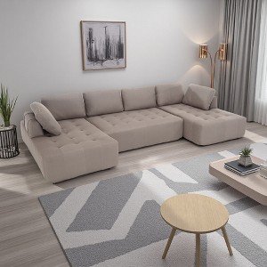 138.5" Mesh Breathable 6-Seater U-Shaped Sectional Sofa, Free Combination