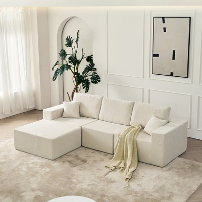 139.3" Modular Sectional Sofa, Boneless Cloud Couch with Ottoman & 2 Pillows, No Assembly, L-Shaped Corduroy Sofa for Living Room & Bedroom