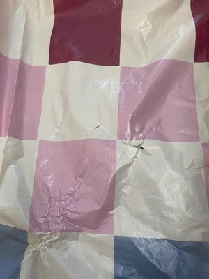 Love the colorful checkered. I will say it arrived damaged because it was nicked but overall it's holding up well. I've had this hanged up for 3 months now and have not experienced any ripping or mold. I also make sure to open the curtain to allow maximum air dry after showering and rinse it down after every shower so no soap scum lingers. Also clean them once a month with a disinfectant spray helps or mildew/mold spray for longevity. Btw they used to be cheaper. I wish they had the option without the shower rings for all these.