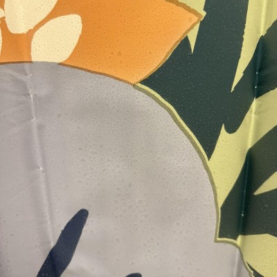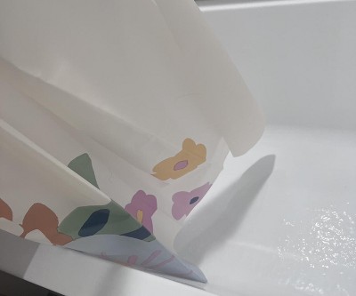 Great plastic curtain fits perfectly and the pattern is beautiful. It reminds me of spring and summer bring so much joy to my bathroom. It’s beautiful and for the quality and the price is amazing. No more water leaks yay.