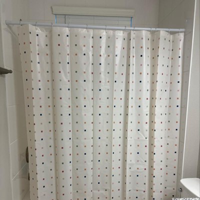 Brighten up the look of your bathroom with this 13-Piece Shower Curtain with Rings Set from Room Essentials™. This set includes a decorative shower curtain featuring a simple design to add instant appeal to your bath space. Made from 100% PEVA material with a buttonhole top for easy hanging, this printed shower curtain includes 12 shower curtain hooks.
