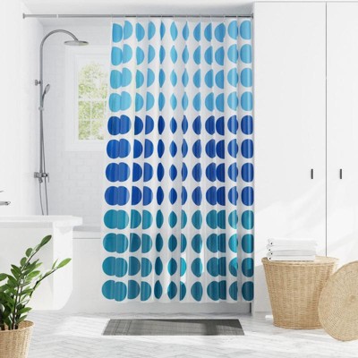The Zenna Home Trina Dot PEVA Shower Curtain Set is an all-in-one solution to lend a lively and fun decor upgrade to your shower space. This 13-piece set conveniently includes a PEVA shower curtain and 12 durable plastic hooks. The waterproof shower curtain features an array of blue and white polka dots on a frosted background. Use the hooks to hang the curtain on your shower rod.