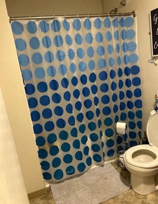 [This review was collected as part of a promotion.] I received my Trina shower curtain and put it up in less than 5 minutes it was so easy. I love that it came with hooks and big hooks as I have a huge shower bar. The blue dots will brighten and modernize any bathroom in your home. It’s so easy to wipe down if it gets anything on it and you can use it with or without a shower curtain liner, a no brainer. You must get this!