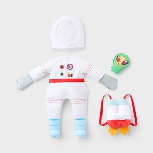 Your space-loving kill will have hours of fun dressing their favorite doll in this Astronaut Baby Doll Outfit from Gigglescape™. This doll costume includes a white astronaut bodysuit with helmet, a pair of gloves and boots, a backpack, and a plush alien with LED lights to bring cosmic magic to their playtime. Designed to fit 14-inch dolls, the outfit set is suitable for kids three and up and comes with the two required batteries.