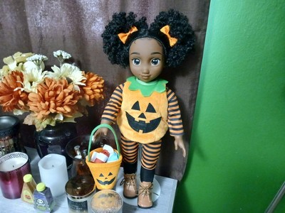 - Includes outfit, plush ghost, pumpkin basket, and more