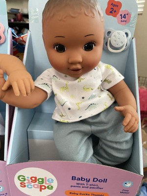 I gifted this baby boy doll to my 5 year old hoping to teach my son some gentleness. I can say, it worked! The doll is small and lightweight and fits in a small stroller or shopping cart. Its little outfit is cute with blue colors and comes with a little blue binky. My son loves to carry it around and pat its head and wrap it in blankets. I only wish it had come with a diaper and a baby bottle. I know I can buy it separately but still wish it had come with it. But overall a great doll and very cute.