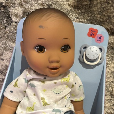I gifted this baby boy doll to my 5 year old hoping to teach my son some gentleness. I can say, it worked! The doll is small and lightweight and fits in a small stroller or shopping cart. Its little outfit is cute with blue colors and comes with a little blue binky. My son loves to carry it around and pat its head and wrap it in blankets. I only wish it had come with a diaper and a baby bottle. I know I can buy it separately but still wish it had come with it. But overall a great doll and very cute.