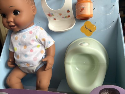 The doll is cute and we like how the potty flushes, but the spoon doesn’t work! It was a disappointment and frustrating for my daughters. We don’t use the “potty” feature so can’t attest to that aspect, but overall has been a fun way to help encourage potty training!