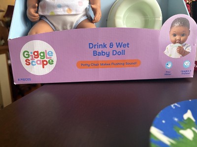 14" Drink and Wet Baby Doll - Blonde Hair + Blue Eyes - Gigglescape™: Includes Accessories & Potty Chair