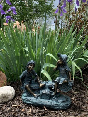 14" Indoor/Outdoor Girl and Boy Playing on Teeter Totter Statue Yard Décor Bronze - Alpine Corporation