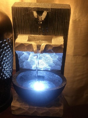 [This review was collected as part of a promotion.] I got this tabletop fountain to place on my mantle in the living area. It's a gorgeous piece that adds to the tranquility of my space. The LED lighting allows customization to my degree of lighting. It's strong enough to use alone to cast a soft light in the space or can be used with additional lighting without being washed out. The soothing cascading water adds such a peaceful vibe to my space. I love this gorgeous fountain and highly recommend it if you're looking to add a small water element to your area.