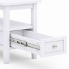 - Features one bottom drawer with metal drawer glides and large open shelf for storage