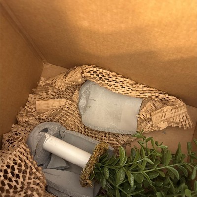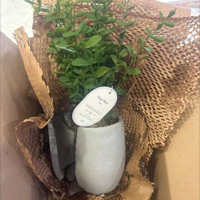 Love this plant / pot.....had it shipped to me and the packaging was horrible. Not wrapped at all and pot arrived in 20 different pieces. Via the app, super easy to get another one sent, send a picture of the broken pot, etc.... Second box arrived exactly as the first. Little to no wrapping around the pot and it too was shattered in a bunch of pieces. DO NOT ORDER ONLINE until Target can figure out how to wrap breakable items. Otherwise this is a darling potted plant! I'd really like one!!! Just not a broken one!