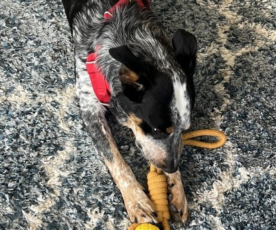 Unfortunately, this didn’t hold up well for my golden retriever. The ball came off the rope in under two hours of play. It may work for lighter chewers, but it wasn’t durable enough for us.