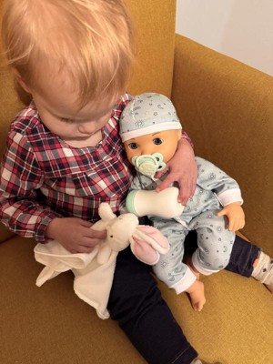 Great baby for your little one to take care on. My son loved that the baby keeps his eyes open when you are holding him and feeding him. But then his eyes close when you lay him down for bedtime. The lovey is a nice touch.