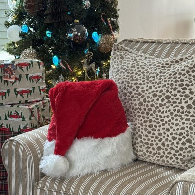 Add a cozy look and feel to your seasonal decor with this Christmas Santa Hat Pillow from Wondershop™. This novelty throw pillow is shaped like a Santa hat in red with faux-fur trim for a fun, festive look that blends with any decor style. Designed for both indoor and sheltered outdoor use, this Santa hat pillow boasts a microfiber faux-fur exterior and polyester fiber filling to add comfort and seasonal style to your sofa, chair or bench.
