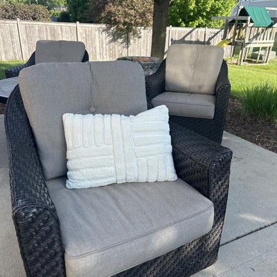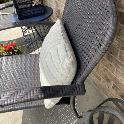 [This review was collected as part of a promotion.] I love these outdoor accent pillows because I feel like the ones that came with our set are too plain. This one has a great 3-D texture with Shaneil stripes in multiple directions. Perfect size to sit on a chair and you can sit with it behind you, or you can actually move it to sit on your lap. Goes with both sides of our outdoor furniture that are khaki and navy blue. A great value. I received an incentive to write this review.
