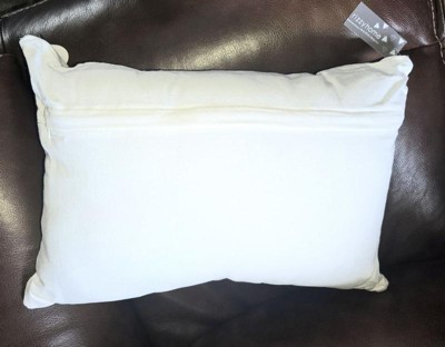 This gorgeous contemporary knife-edged pillow is beautifully textured with satin stitch embroidered accents that elevate the crisp patterning, adding a touch of luxury to your home decor. Its solid coordinating back features a hidden zipper closure that ensures the pillow is not only fashionable but equally functional for filling and cleaning. This ivory and black beauty adds a touch of elegance to your living space with its sophisticated color palette and pristine design. Place it on your sofa, chaise or bed and bask in the opulent texture and stunning design of this original accent pillow from Rizzy Home.