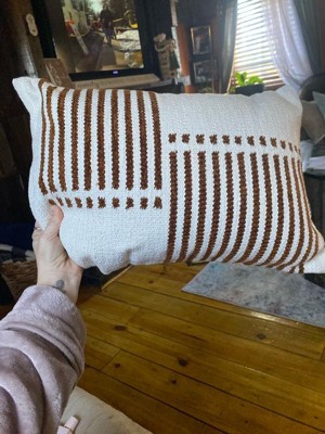 [This review was collected as part of a promotion.] The Rizzy Home Modern Striped Pillow offers a stylish blend of natural and camel tones with a textured woven design. Its poly fill provides comfort and durability, while the modern stripe pattern adds warmth to any decor. Though well-made, a removable cover would enhance convenience..