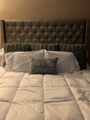 14"x21" Oversize 'Mr & Mrs' with Pearl Trim Lumbar Throw Pillow Gray - Edie@Home