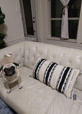 [This review was collected as part of a promotion.] I recently received the Stripe Pillow by and wow, it’s giving my living room an instant upgrade! I love the texture with the eyelash fringe and those cute little semi-poms. The neutral ivory and black stripes are so chic and fit in perfectly with my décor without being too loud. Plus, it’s super comfy for a quick nap on the couch. What I really like also is the hidden zipper. So easy to clean! This little gem has found a cozy spot in my room, it looks good just about anywhere – Total style win!