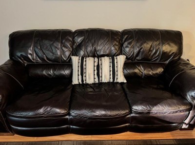 [This review was collected as part of a promotion.] I love the size of this pillow, and it looks beautiful on my couch. The firmness is perfect, offering great support without being too stiff. The design is versatile, and I can see myself moving it around to different areas of my home as it matches a lot of my decor! The only downside is that the material on the stripe design seems a little folded on the sides. It doesn't lay completely flat, and when I try to smooth it down, the material stays raised. It's a small issue, but worth noting. Other than that, it’s a great pillow, and I’m really happy with it!