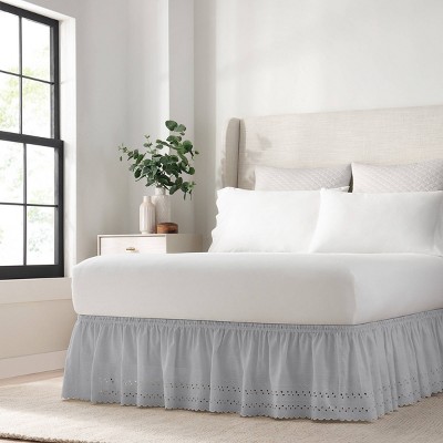 14 Inch Drop White Bed Skirt - Elastic Wrap Tailored 3 Fabric Sides, Easy Install Queen & King Size