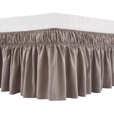 14 Inch Drop White Bed Skirt - Elastic Wrap Tailored 3 Fabric Sides, Easy Install Queen & King Size