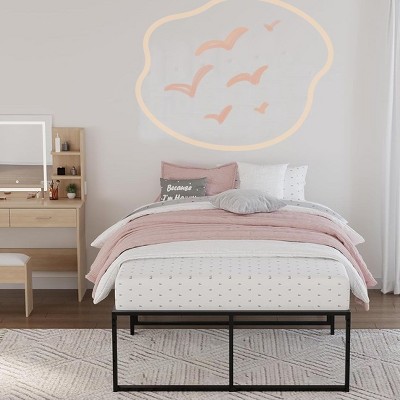 - Under Bed Storage: 14 inch metal frame bed, this frame offers under-bed storage space ideal for keeping your bedroom organized and clutter-free. Easily store seasonal items, shoes, or other under the bed for optimal space utilization. No Box Spring Needed: This platform bed frame no box spring needed. Its Flat platform base provides sufficient support for various types of mattresses.
