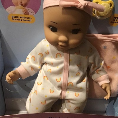 A: Hi G - Thank you for reaching out. We appreciate your interest in 14" Nurturing Baby Doll. The doll is designed to provide playful, interactive sounds to mimic real baby feeding. Have a great day!! - Emma