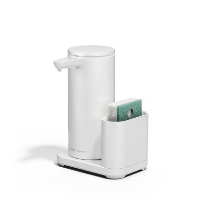 The perfect tool for dispensing soap touch-free without leaving germs behind. Optimized for efficient dishwashing with a caddy that perfectly fits the pump and stores a sponge so it's always at your fingertips. Holds 50% more soap than our standard pump so you'll refill less often. Clog-proof tubing pump ensures a precise and consistent flow, and the silicone valve prevents messy drips. To control the amount of soap desired, you can position your hand up close to the sensor for a little soap and farther away for more. A wide refill opening makes refills fast and easy, and a there's a QR code under the lid so you can reorder soap in a flash. It's also waterproof for easy cleaning. Rechargeable with included wireless charger — and one charge lasts up to 8 months. Use simplehuman soap for optimum pump performance. Also works with hand sanitizer.
