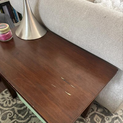 We were pretty pleased with this. It's one of the few side tables that has a similar version that is wide in the same color. Assembly was pretty easy. Goes nice next to an armchair, without taking up a huge amount of room. The drawer space is pretty good, too.
