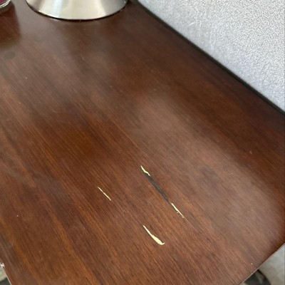I had my eye on these for months! I finally pulled the trigger and was so excited to get them. I’ve had them almost a year and unfortunately after just a few months, they started chipping and the wood is buckled. I never put drinks or anything wet on the tables, but I think one time someone put a drink that had condensation for a couple minutes and the next day, I noticed the chipping/buckling. Then a few weeks after that I noticed the other one had a chip on the top too. I’m so annoyed because I really love these but everytime I walk by them in my house, all I can see is the big chip!